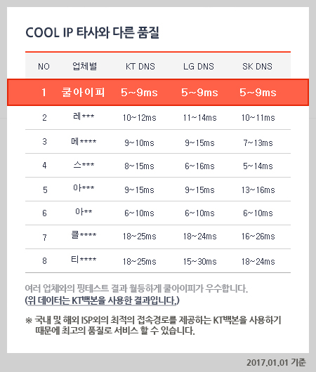 - 철저한 IP관리, 1~6개월간 사용이력이 없는 IP를 제공, 월 1회 전대역 교체, 끊김없이 빠른 IP교체(특허)